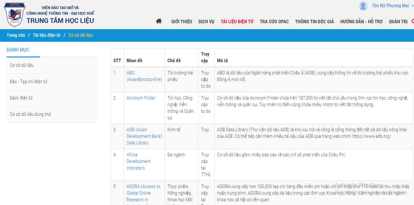 Với hình thức truy cập gián tiếp này, bạn đọc có thể tìm hiểu thêm các cơ sở dữ liệu điện tử khác do Trung tâm Học liệu cung cấp ngoài Science Direct.