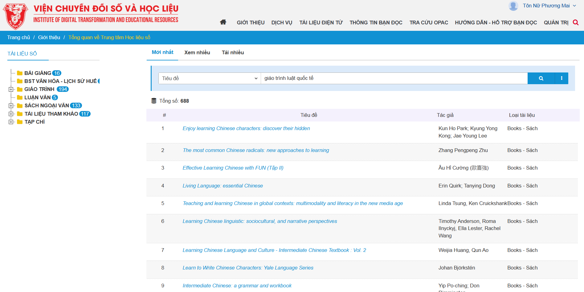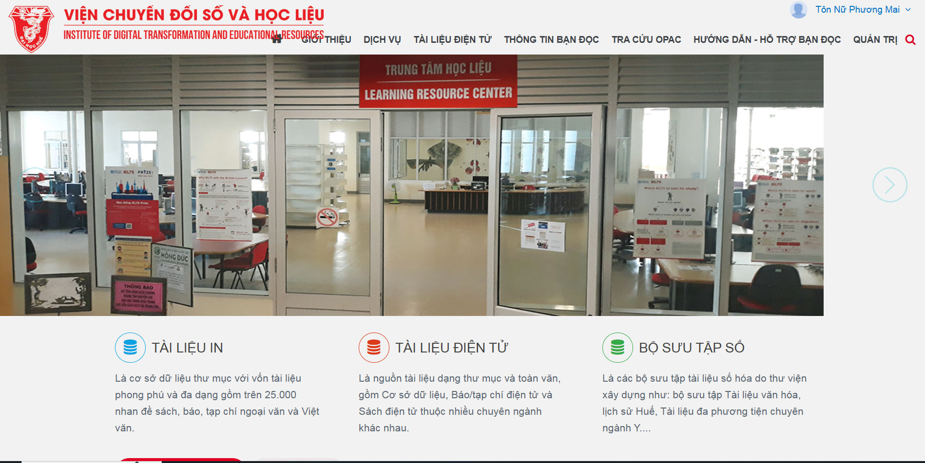 của Trung tâm Học liệu gồm giáo trình, tài liệu văn hóa lịch sử Huế và một số